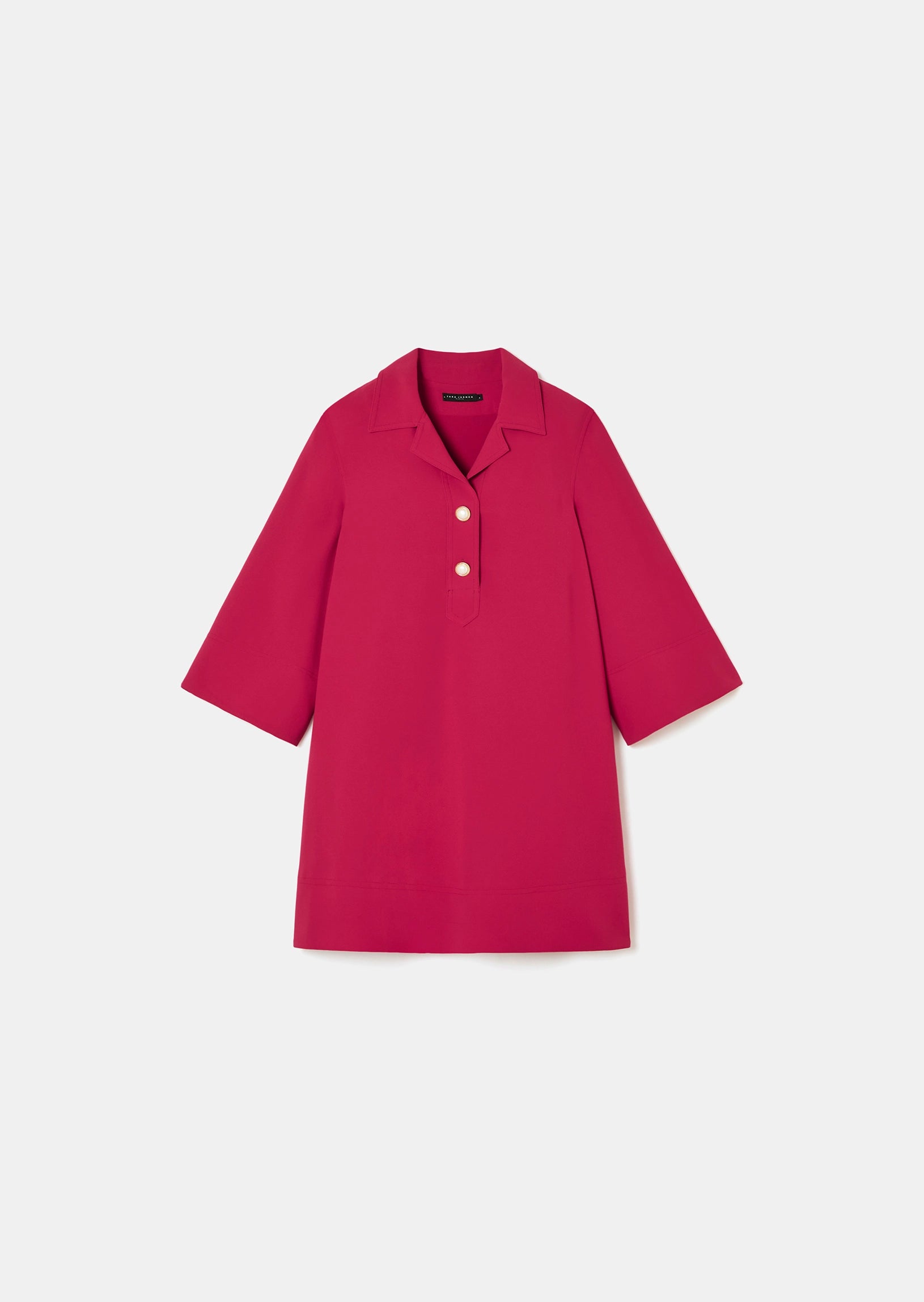 Ross, our garnet dress. Raspberry: the color of spring. This garnet Ross dress is part of the Lee or Jacky wardrobe. The color also appears on the Pia pants.