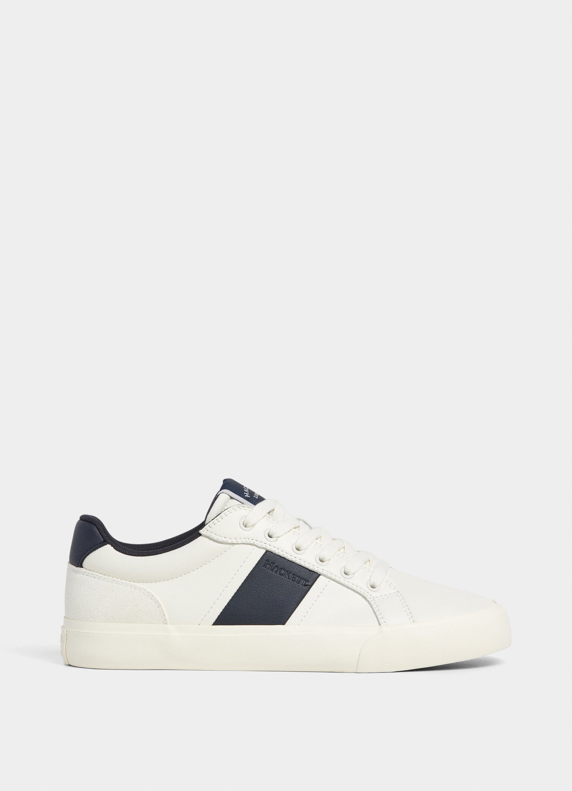 A vulcanized sneaker crafted in recycled leather and suede combinations. Featuring removable insole and metal eyelets. Printed Hackett logo on the quarter.