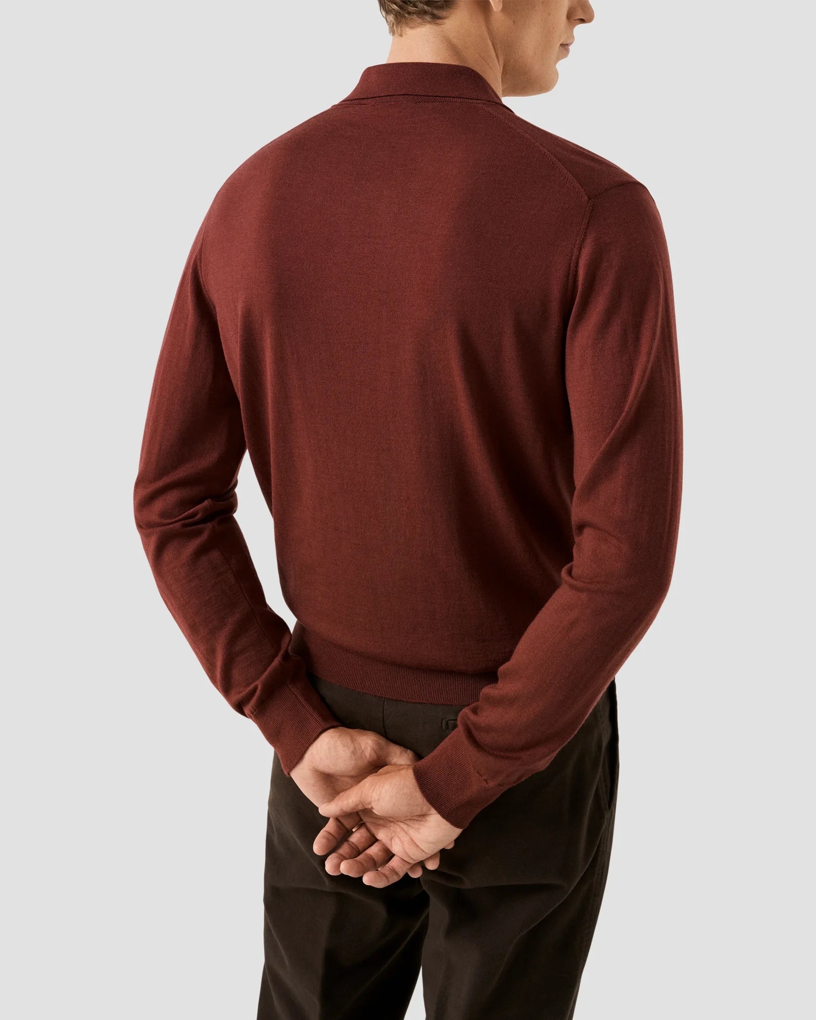 A polo sweater crafted from 100% extra fine Merino wool, knitted in a 14-gauge plain stitch by heritage knitters in Italy. Designed with a structured knitted collar and cuffs and finished with mother-of-pearl buttons, it offers a smooth finish and lightweight feel—a refined knit that is ideal for elevated casual dressing and smart layering.