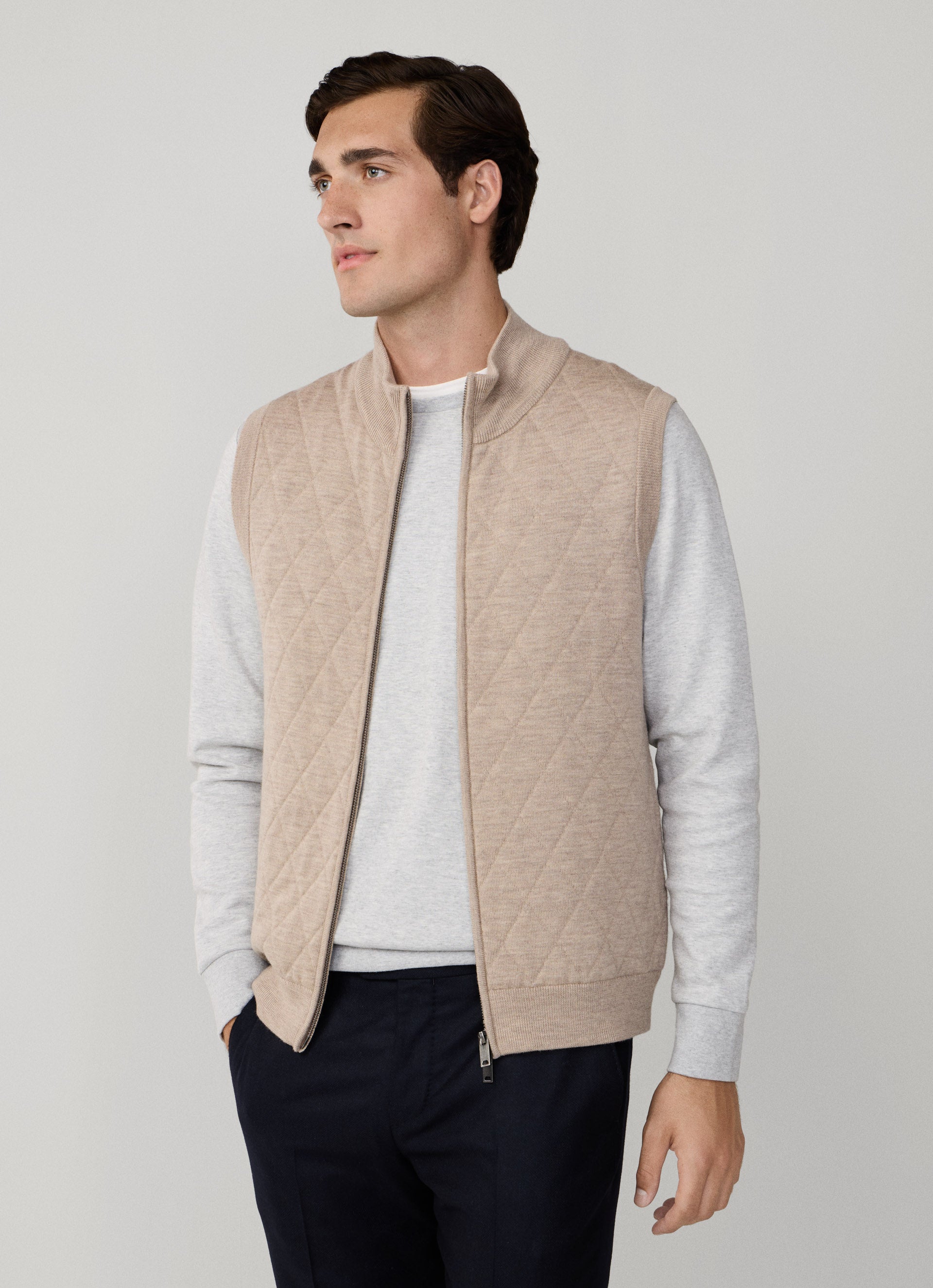 A regular fit quilted gilet crafted in extra fine merino wool. Featuring diamond quilting, ribbed trims, a covered double zip and accented with a leather 'Hackett' branded puller.