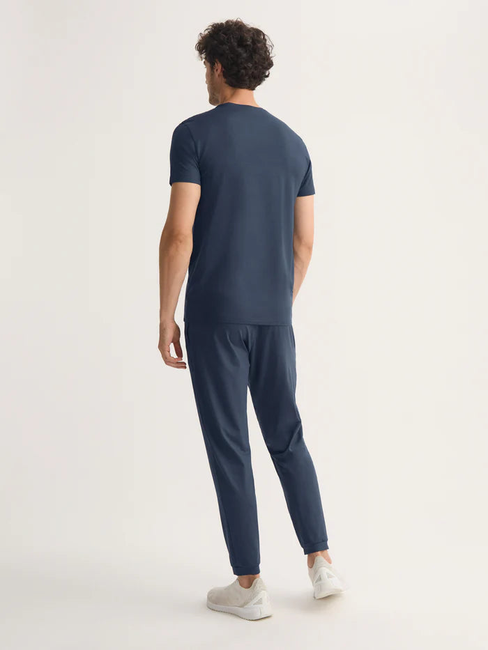 Our signature Basel men’s t-shirt is a wardrobe essential: versatile and classic. Made from a unique blend of stretch micro modal for an extraordinarily soft and comfortable wear, it will quickly become your go-to navy t-shirt. Perfect for sleeping, lounging or making a long-haul flight a lot more bearable.
