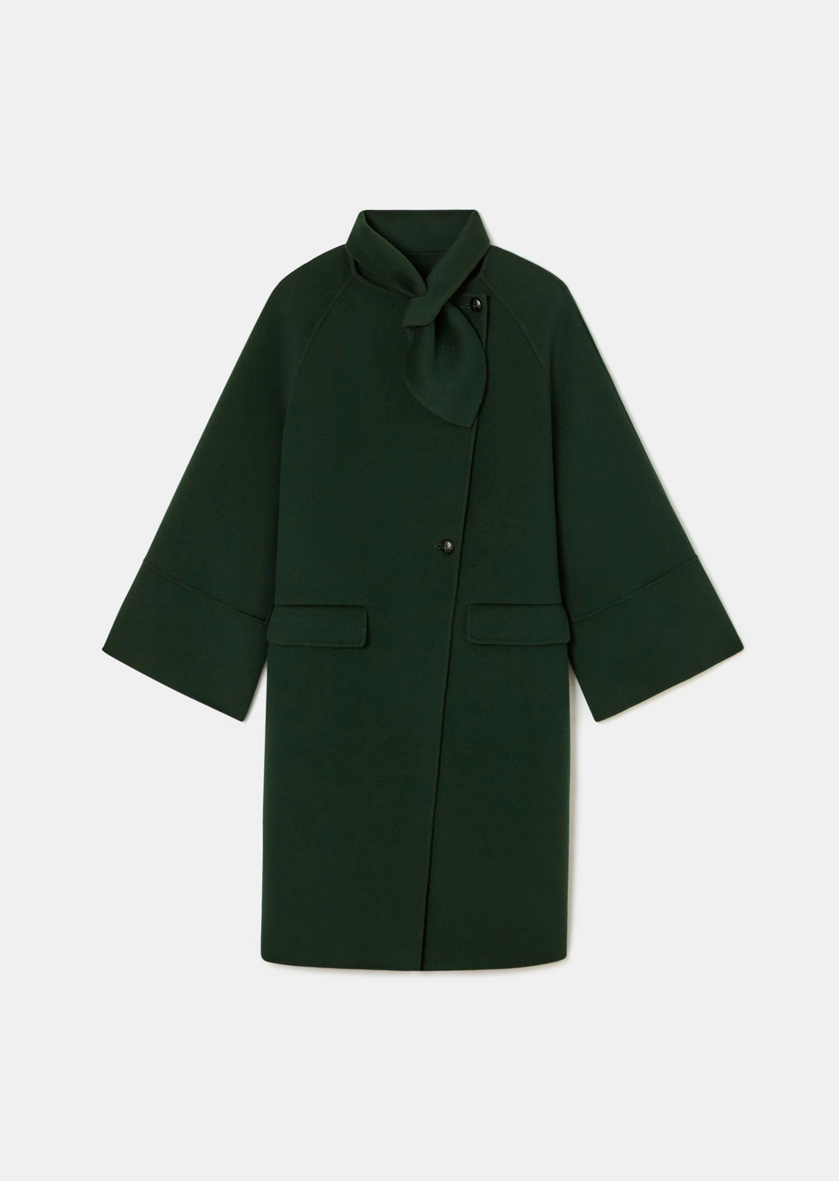 Mocca, our English green double-face coat. Made from carefully selected wool. Deep green, neat collar. This English green Mocca double-face coat in wool is part of the Meet Mary wardrobe. It fits perfectly into a look with the Pedro sweater and the Pamelia sweater.