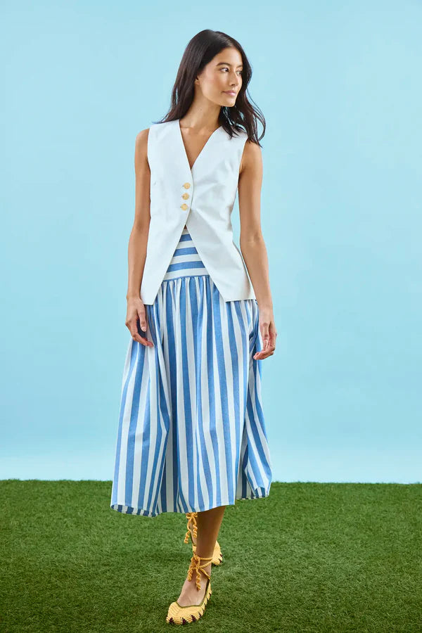 Meet your new styling staple, the Roma Vest in crisp white. Designed with a flattering V neckline and a sleek, sleeveless silhouette, it brings a fresh, modern edge to any look. Crafted from a breathable linen blend, it keeps things light, polished, and ready for wherever the day or night takes you.