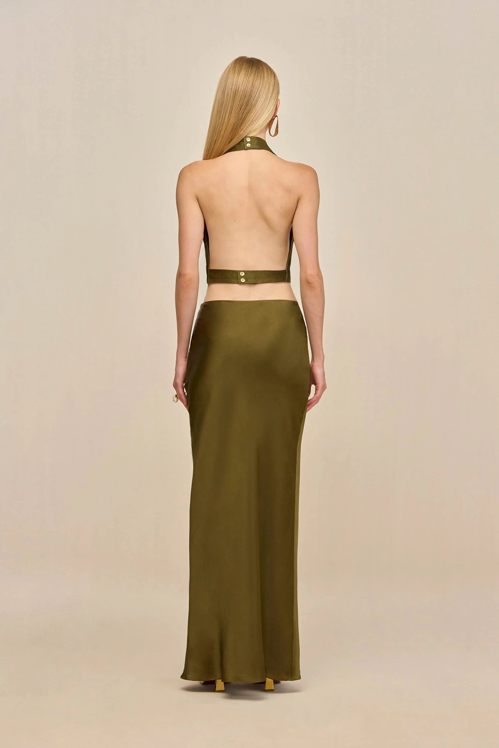 A bias cut maxi slip skirt crafted from silk with slight stretch.