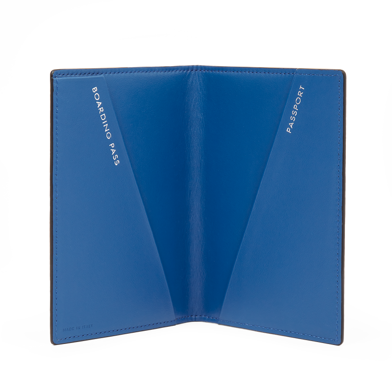 - Passport cover in Nile Blue crossgrain calf leather