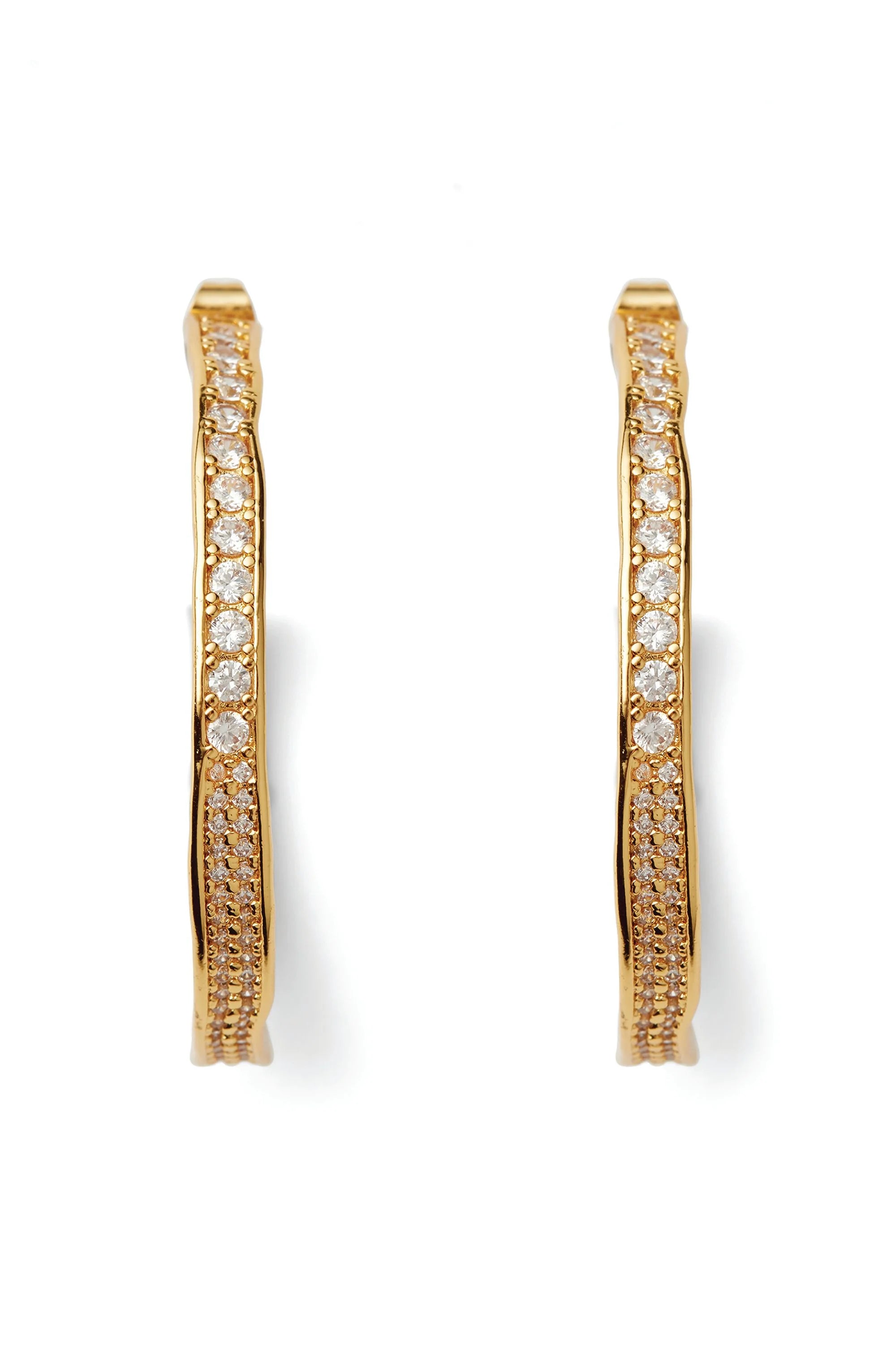 The Afrodita hoops features an irregular shaped style with sparkling cubic zirconia.