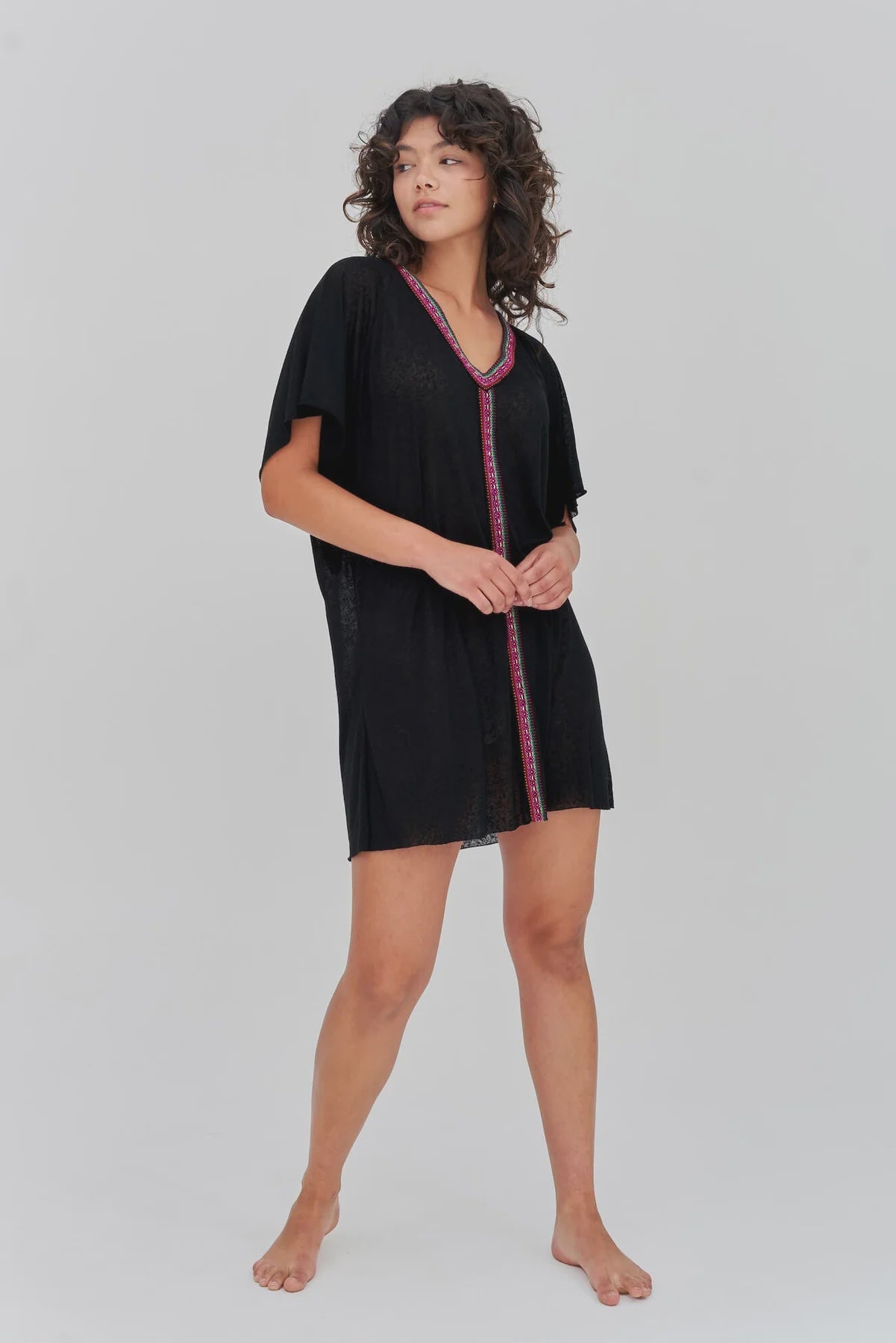 A spin-off of our Inca Abaya maxi dress, our Mini Abaya gives you the same comfort and style in a shorter version. An amazingly light and colorful adaptation of the Middle Eastern Abaya, edged in our signature Inca trim.